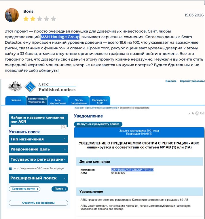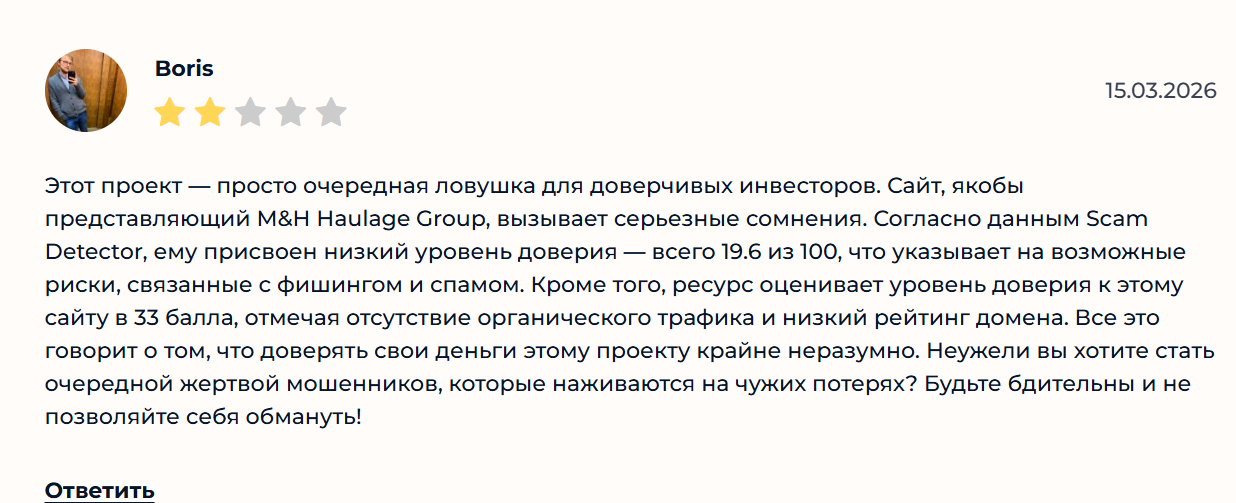 Еще один пользователь провел свое расследование о компании M&H Haulage Group, которую по его словам продвигал трейдер, и тем самым уберег себя и свой карман от потерь.