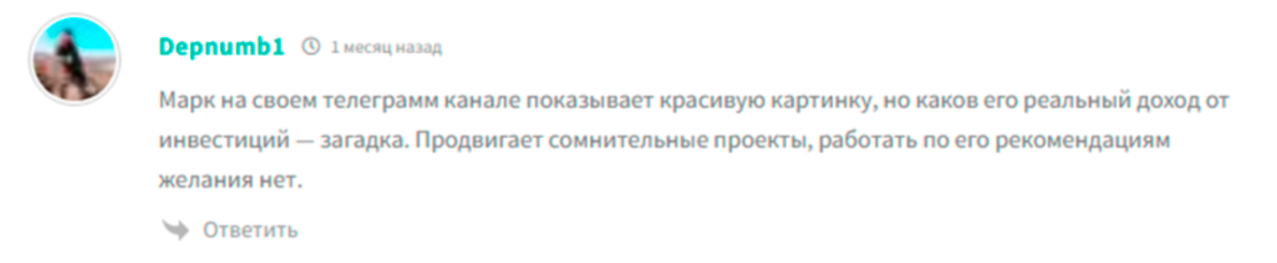 Ни одного отзыва о заработке с Марком в сети нет, все отклики только об убытках и недоверии к его проекту.