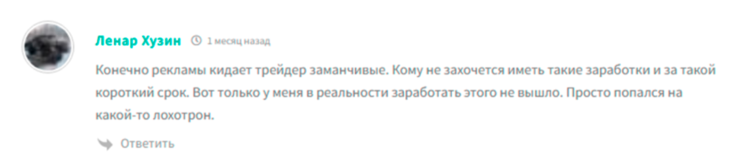 Откликов людей о том, как они работали с анонимным специалистом по инвестированию под именем Марк в интернете не много. Некоторые клиенты пишут как доверились трейдеру и планировали заработать, другие говорят, что вовремя остановились и до сотрудничества дело не дошло.