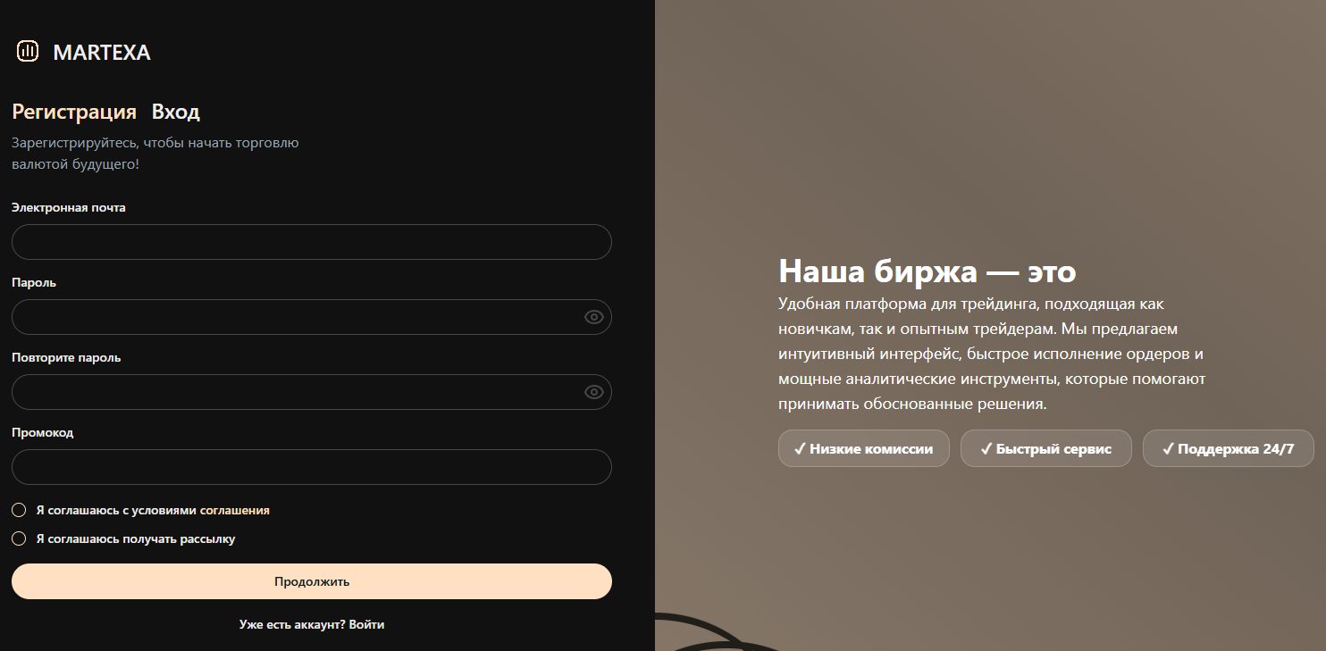 Martexa биржа – это криптовалютная торговая платформа, которая якобы предлагает своим клиентам низкие комиссии и круглосуточную поддержку. Сервис, по утверждениям разработчиков, работает несколько лет, однако насчет этих заявлений есть сомнения. В сети слишком мало упоминаний проекта, а до недавнего времени о нем вообще почти ничего не было известно. Далее в материале разберемся, честно ли работает ресурс или нет.