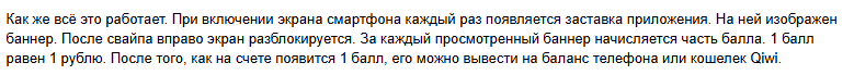 Клиенты на начало 2026 года ничего не знают о разработчиках и администрации, которая поддерживает работоспособность сервиса. Приложение автоматически подгружает рекламу на экран блокировки телефона и клиенту нужно просто разблокировать его. При этом не обязательно физически ее просматривать для начисления оплаты.