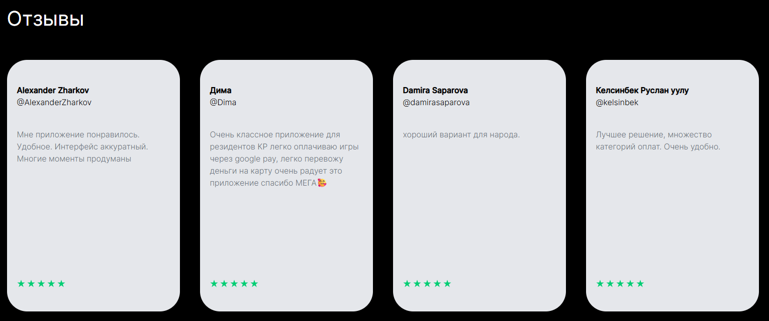 Получить в MegaPay можно исключительно виртуальную карту Visa. На этом моменте становится очевидно, что сервис не российский. Проект в первую очередь разработан для жителей Кыргызстана: в РФ вряд ли получится свободно ей пользоваться.