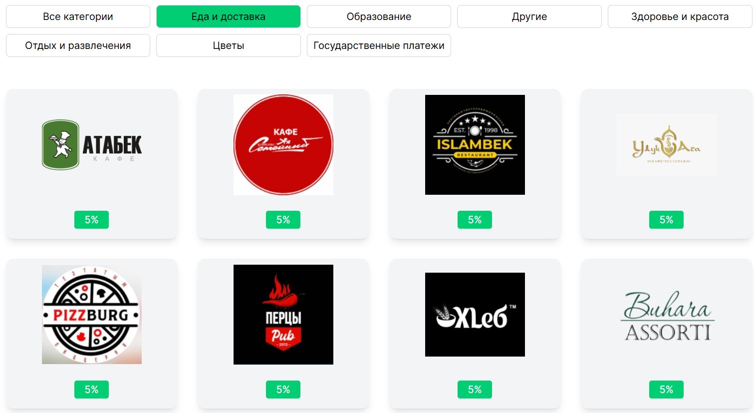 О кэшбэке почему-то не было ничего сказано ранее: узнать о нем можно только во вкладке “Бонусы”. Тут представлено несколько десятков фирм разных категорий, в которых можно получить выгоду. Как правило, сумма возврата составляет 5%, но у некоторых компаний почему-то только 1%.
