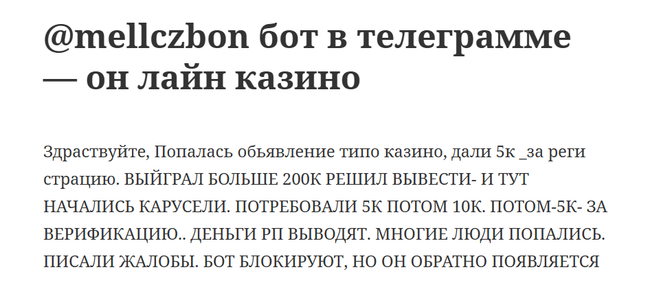 Mellczbon Bot отзывы : разоблачение скам — бота в Телеграмме MellsmBot