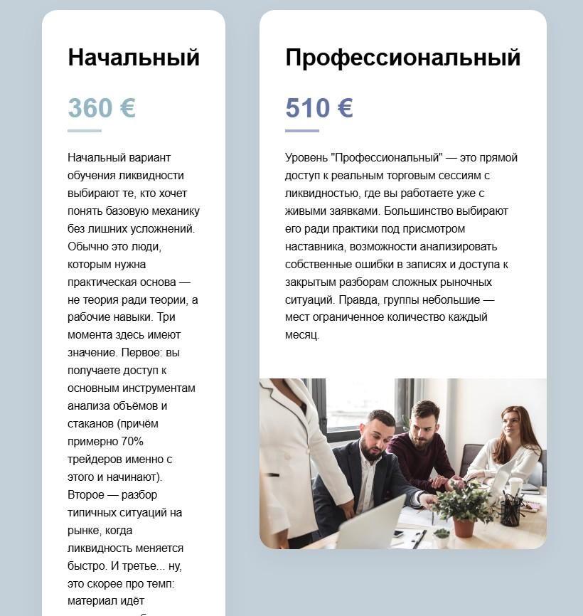 Дополнительно предполагается обучение в удобном темпе, времени и месте. Подходит для улучшения навыков, начала новой профессии и входа в карьеру. Акцент делается на чтение микроструктуры рынка, обработку асимметрии информации и практический подход над теоретическим.