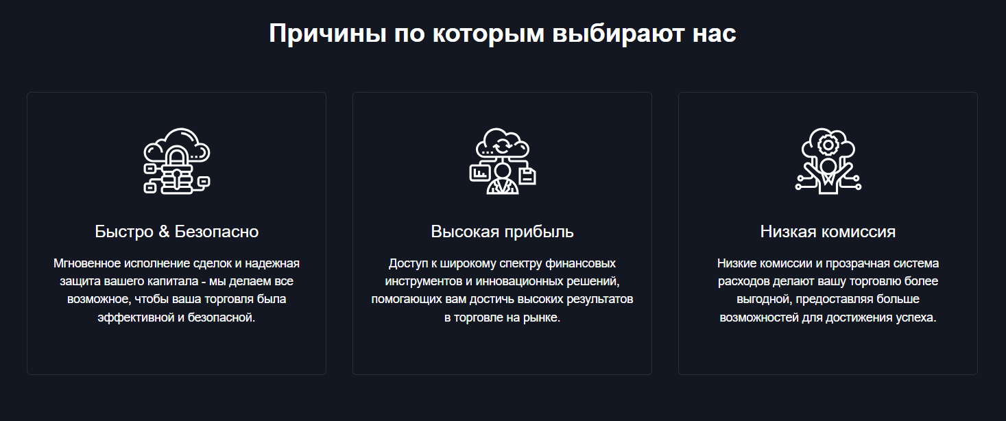 • Быстрота и безопасность. Обещают мгновенные исполнения ордеров и защиту денег на балансе.
