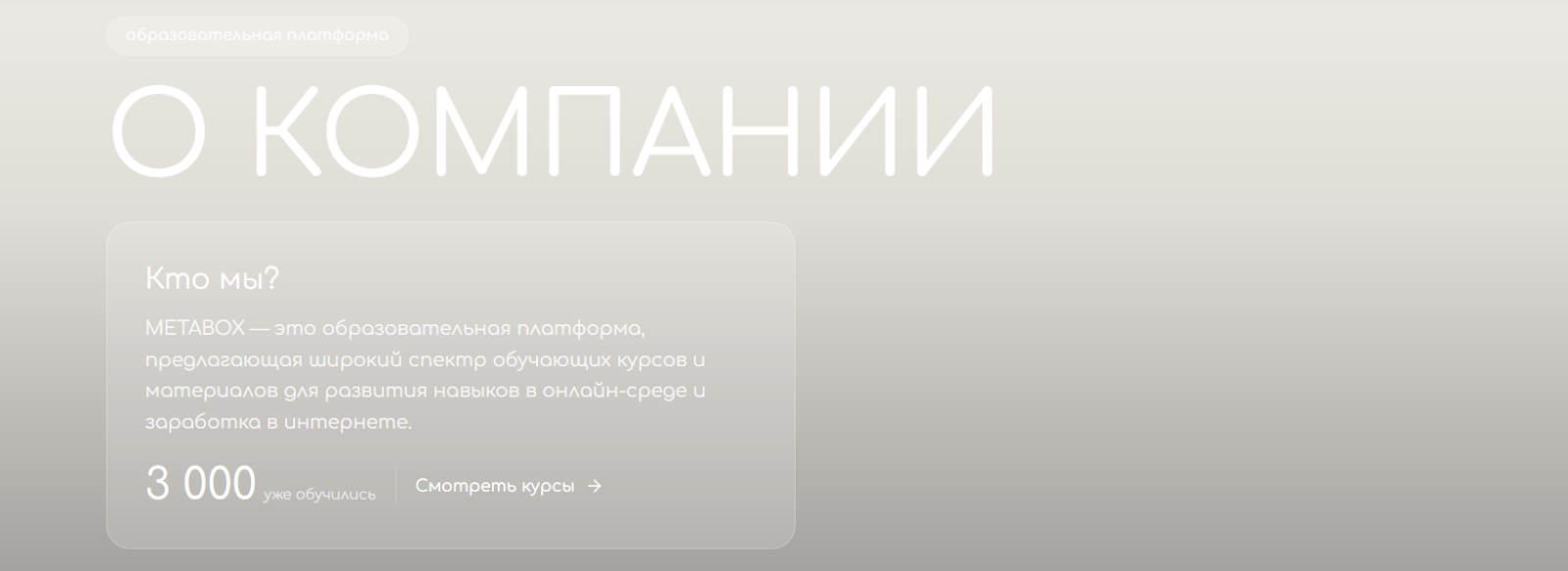 «Мета Бокс ру» позиционируется как образовательная платформа с широким спектром обучающих программ. Участники проекта смогут развить свои навыки в онлайн-сфере и зарабатывать в сети. Якобы более 3000 участников уже прошли обучение.