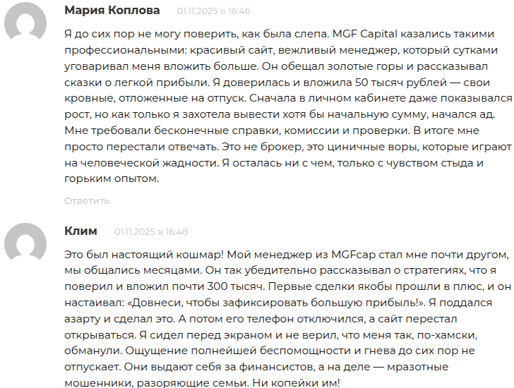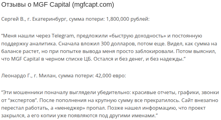 - В сети пользователи максимально негативно отзываются о проекте Mgfcap com.
