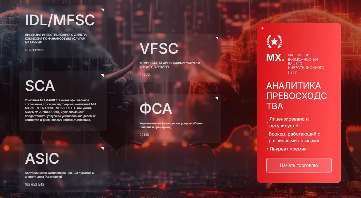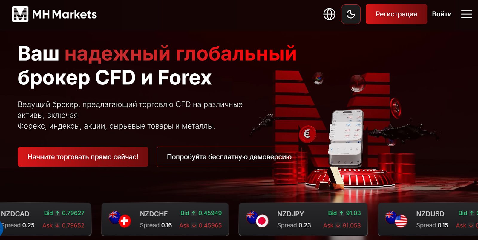 Официальный сайт брокера MH Markets – mhmarkets com. Клиентам предлагается торговля CFD на разные активы: валюты, индексы, акции, товары и металлы. Брокер обещает доступ к более чем 100 валютным парам с ультранизкими спредами, акциям крупнейших мировых компаний, нефти, природному газу, золоту.