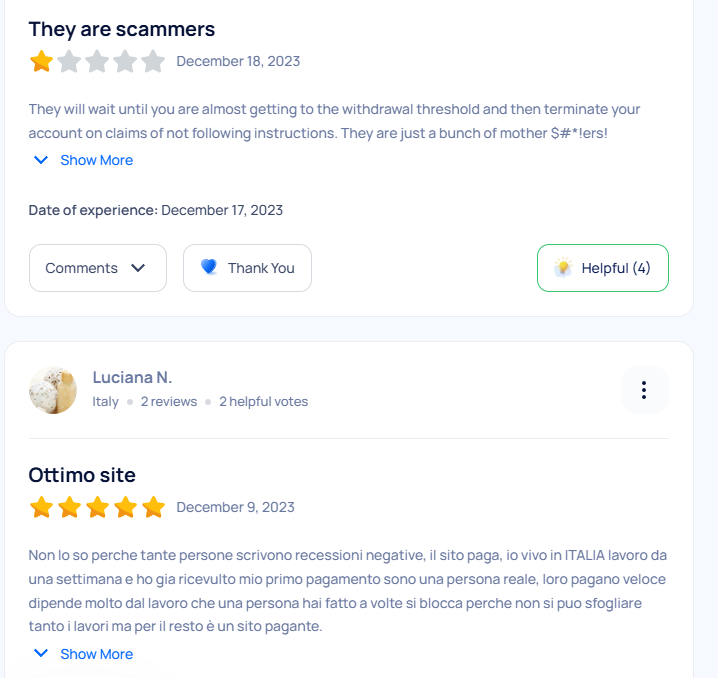 В сети о сервисе Microworkers отзывы встречаются преимущественно отрицательные, но иногда могут быть и положительные комментарии. В большинстве случаев люди жалуются на то, что у них возникают проблемы с выводом. На накопление минимальной суммы, составляющей около 10 долларов, требуется потратить много времени. Когда появляется возможность вывода, то возникают разные сложности с верификацией и прочими проблемами, в результате которых невозможно получить заработанные деньги.