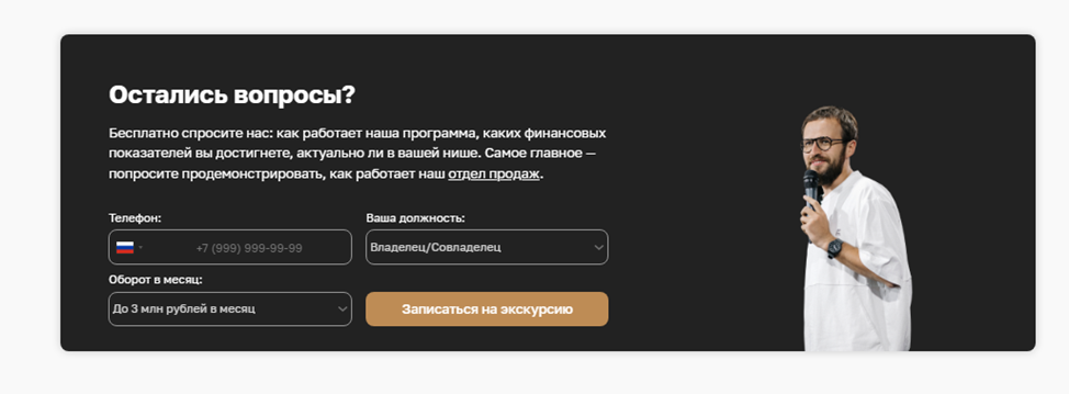 - В 2018 году запустил первый инфопродукт «Реальный отдел продаж» — на начальном потоке отучились 15 компаний;
