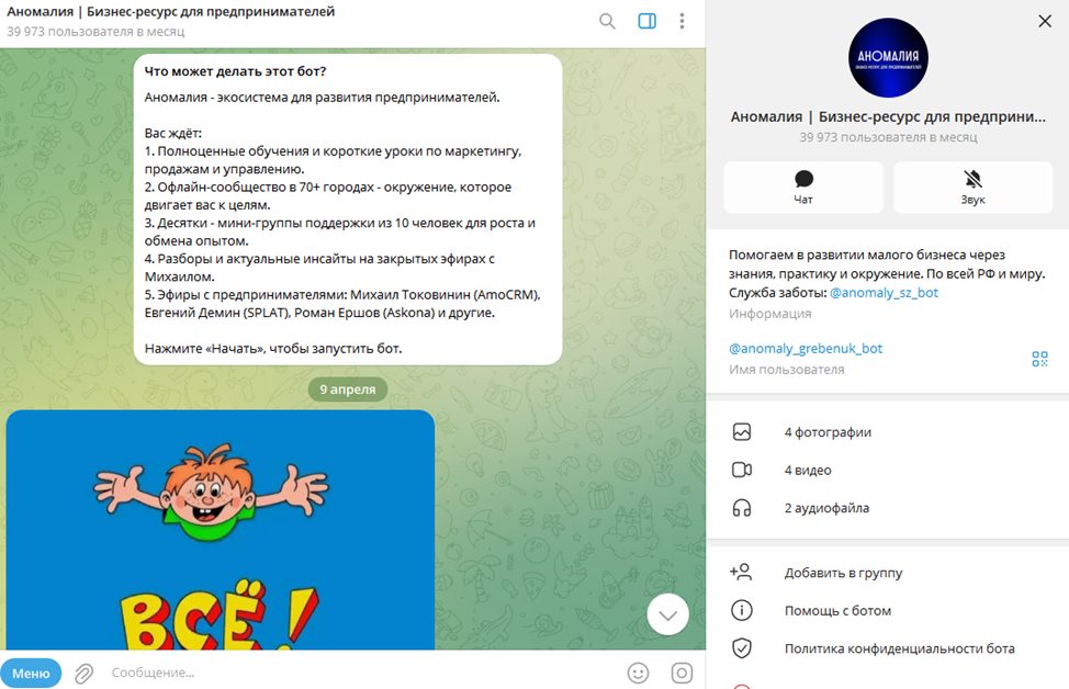 Кроме продажи обучения и консалтинговых услуг, Михаил монетизирует свою деятельность за счет информационного проекта «Аномалия», работающего в формате закрытого тг-бота и мобильного приложения.