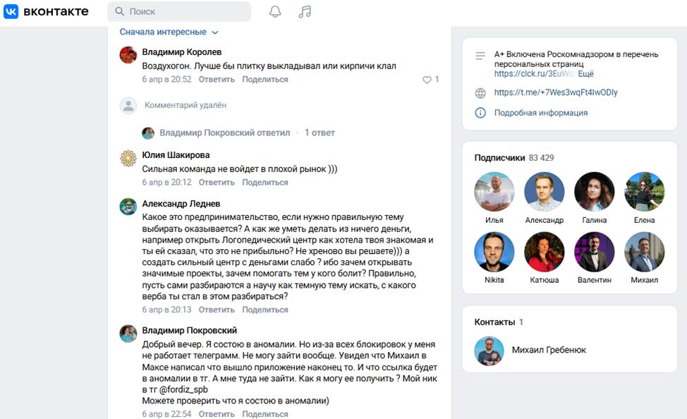 9 апреля 2026 года у группы было 274 тыс. последователей, а каждый новый пост смотрит не менее 50 тыс. человек.