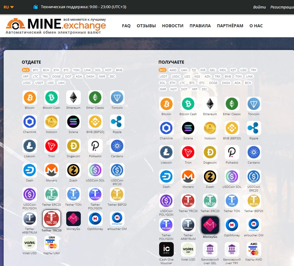 Mine.exchange – стандартный криптообменник с длительным сроком работы и широким набором направлений. Платформа предлагает базовый функционал без сложных инструментов.