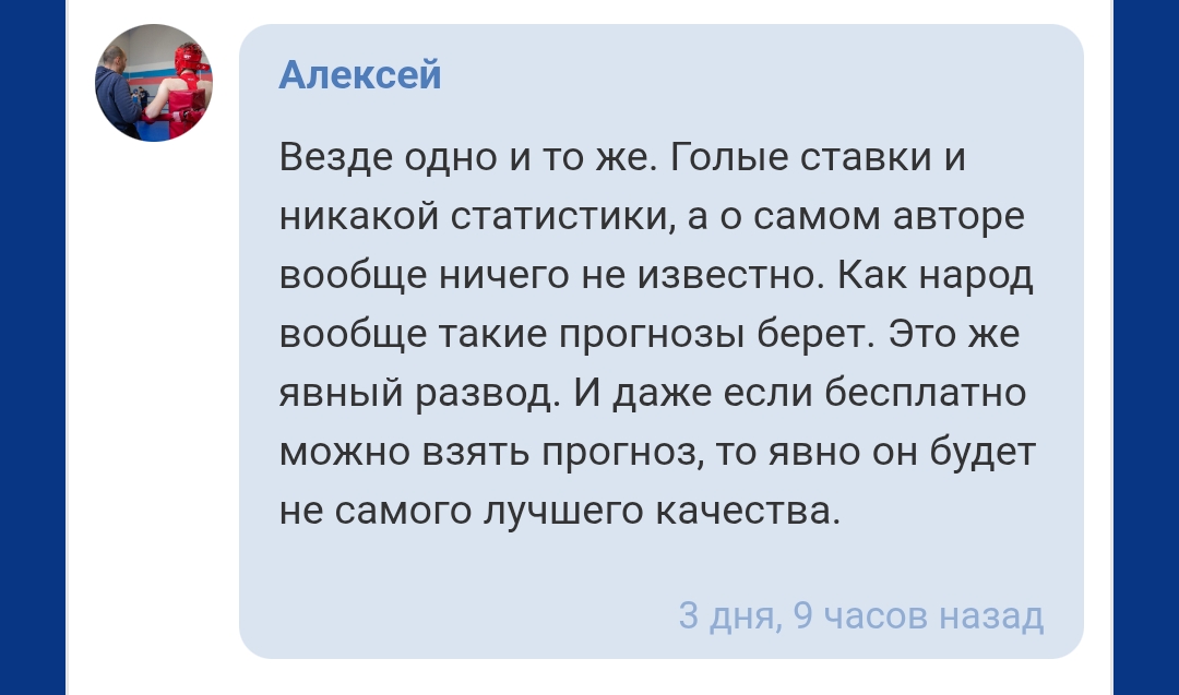 Вместе с тем заметны сомнительные моменты. Условия покупки платных прогнозов не раскрываются заранее: как правило, перечисление идет или на карту физлица, или в криптовалюте, что затрудняет возврат средств при спорных ситуациях. Поддержка ограничена личными сообщениями, на которые админ нередко отвечает скриптами. Формально говорится о высоком профите, однако прямых доказательств нет.