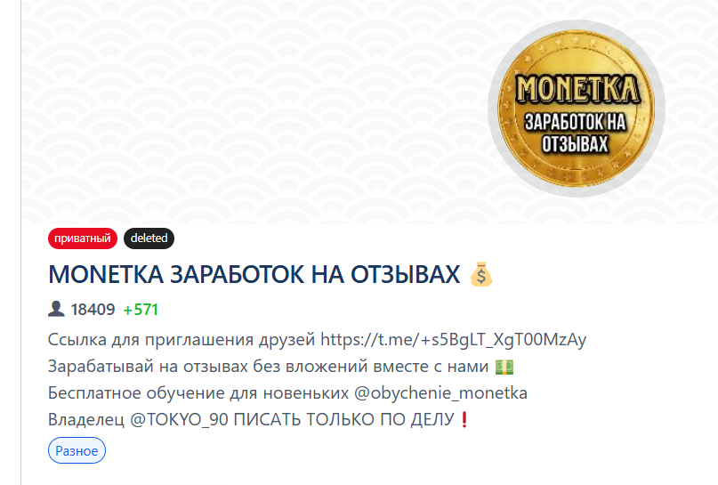 Обзор проекта «Монетка Заработок на отзывах»: что думают пользователи, проверка канала в Тг и связанных аккаунтов, изучение условий и анализ деятельности Tokyo_90