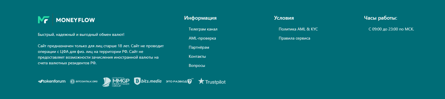 Официальная регистрация, гарантии обменника Moneyflow Exchange