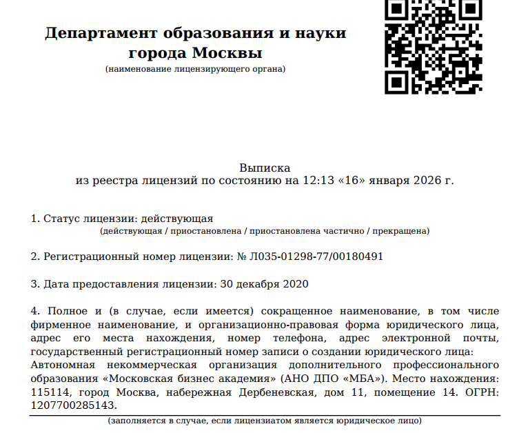 - У онлайн-школы MoscowMBA есть действующая лицензия, но некоторые из заявленных пройденных аккредитаций не подтверждены документально. Есть вероятность, что преимущества окажутся фейковыми.