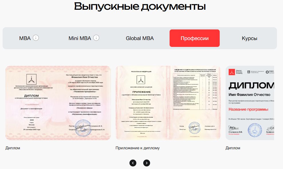Окончив обучение выпускники получат Диплом с приложением, а также Сертификат онлайн-школы «Москоу МБА».