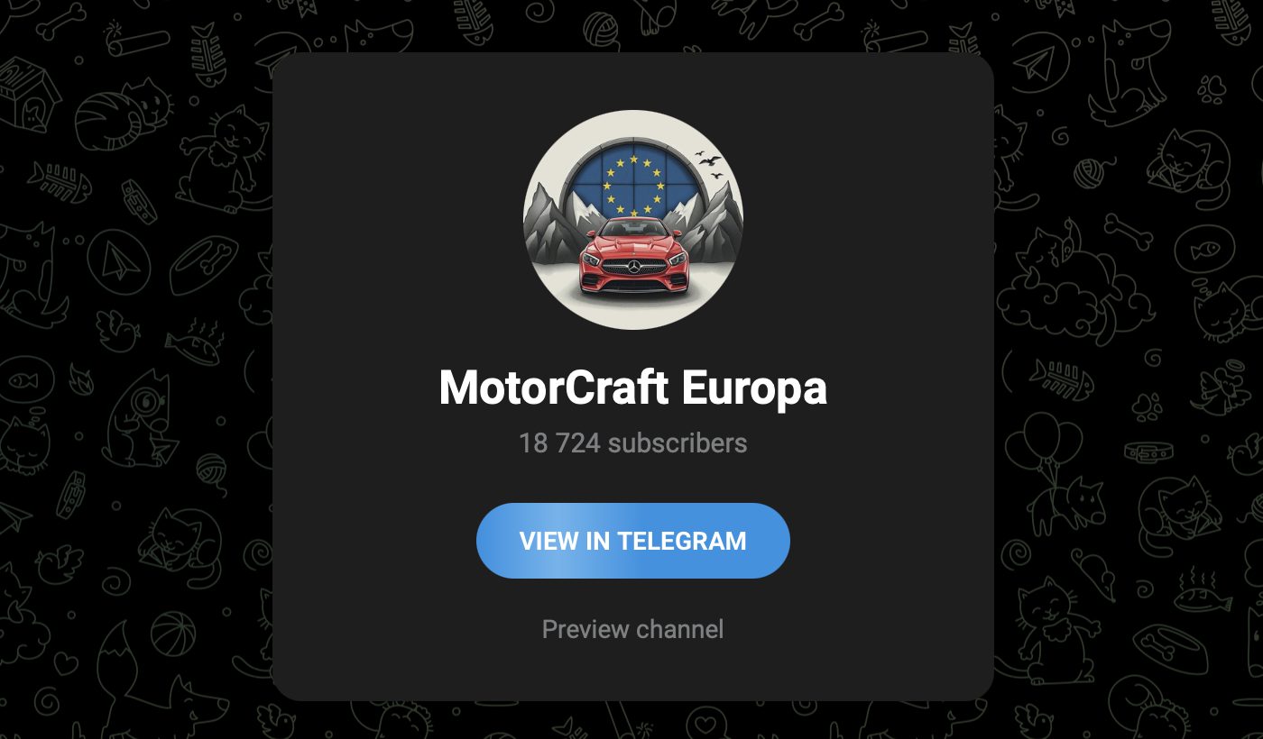 MotorCraft Europa — это канал в Telegram, предлагающий доставку подержанных автомобилей из Европы, с акцентом на немецкие марки по слишком заманчивым ценам. Здесь обещают полный цикл: от подбора машины до растаможки и доставки в Россию, с консультациями и дополнительными документами.