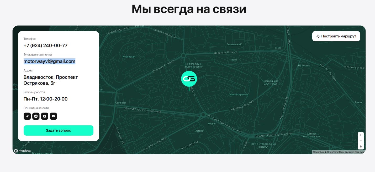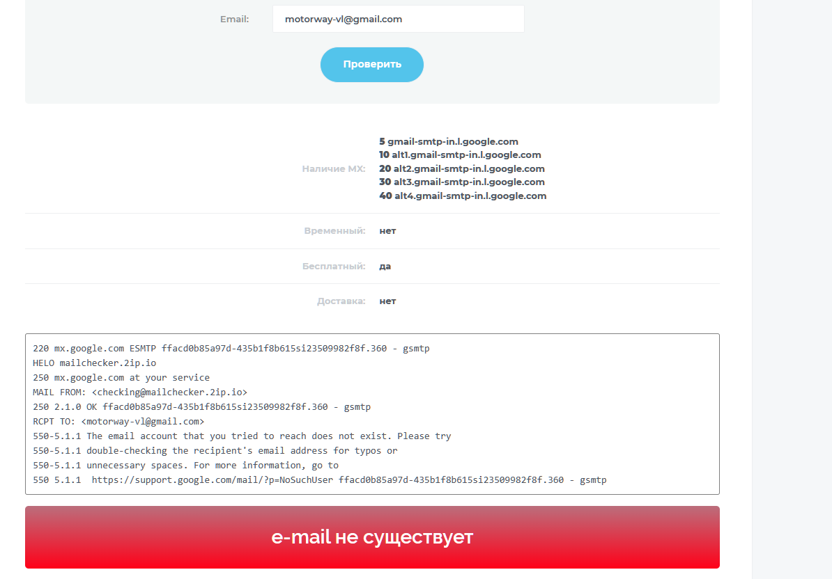 Адрес электронной почты, указанный для связи motorwayvl gmail com не существует и не зарегистрирован.