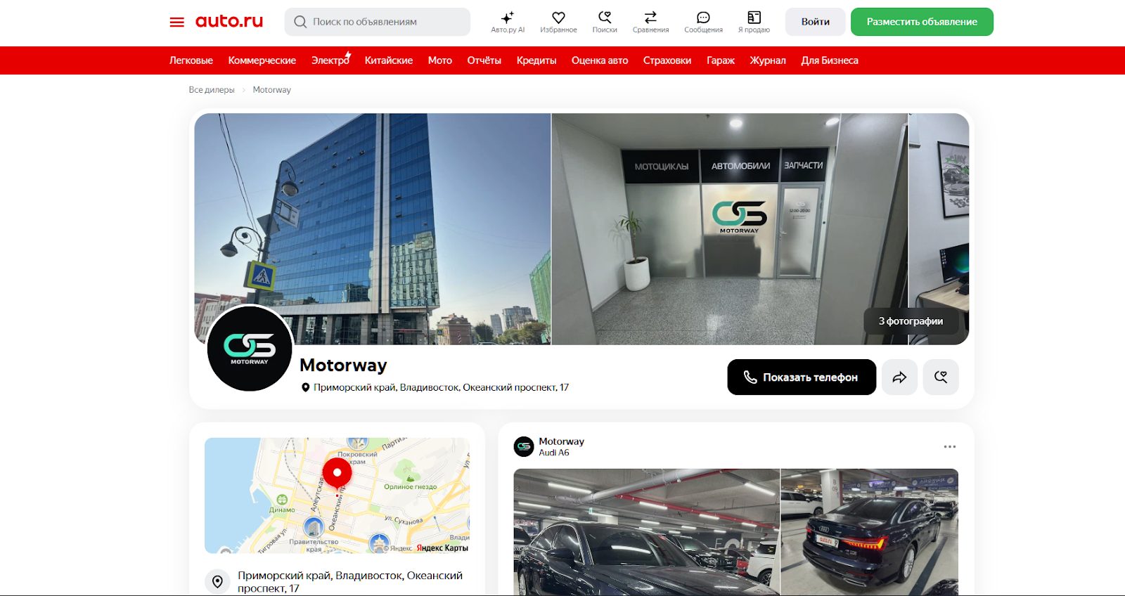 Компания имеет собственную страницу на AUTO.RU, здесь посты посредника просматривает больше пользователей, примерно 2000 человек.
