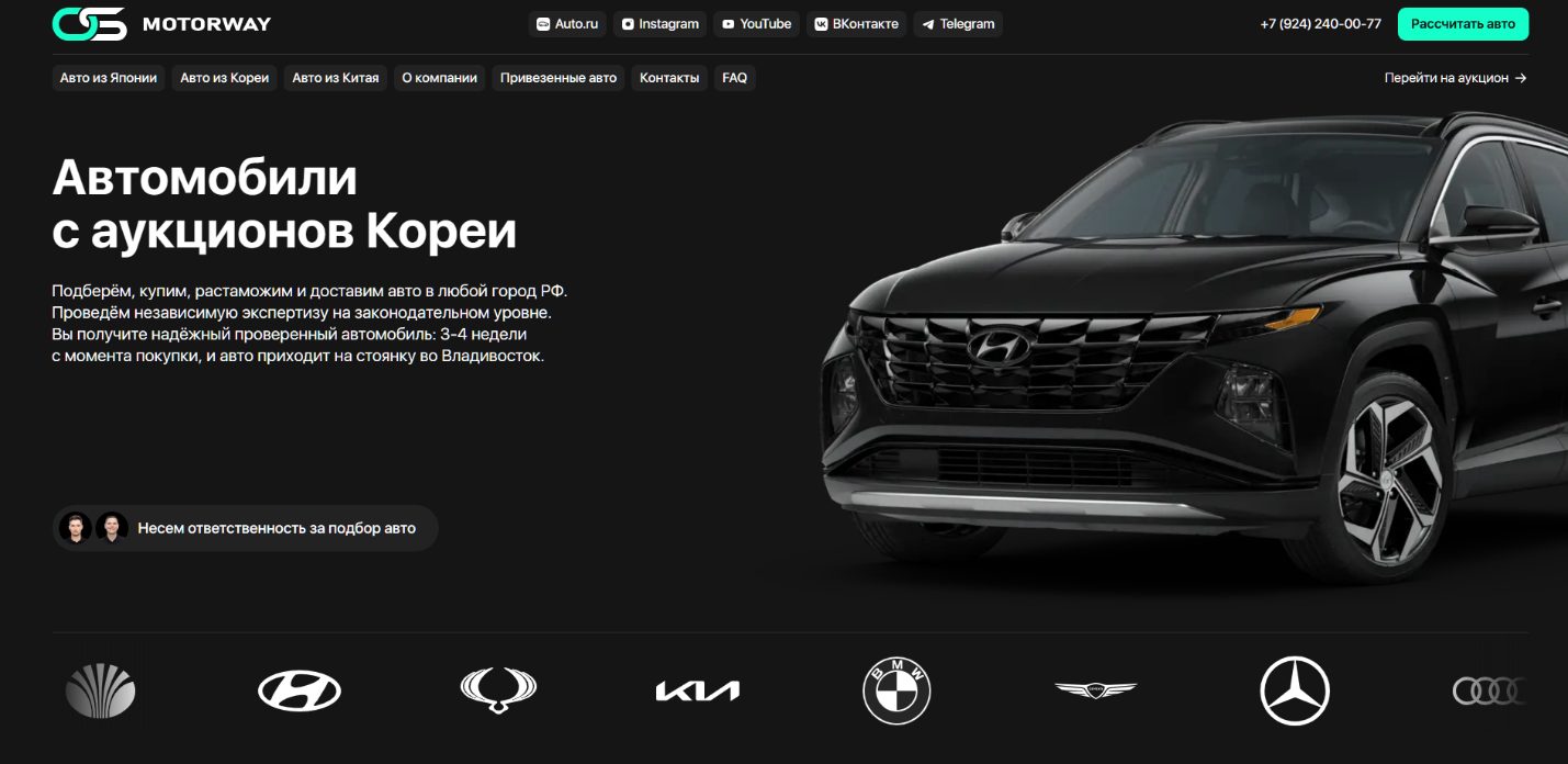 Автомагазин Motorway отзывы в социальных сетях имел позитивные, но похоже, что благоприятная ситуация с доставкой авто из Кореи, Японии и Китая закончилась в 2024 году. Так как ТГ канал компании и сайт продолжают работать и принимать заявки важно проверить гарантии продавца и надежность фирмы.