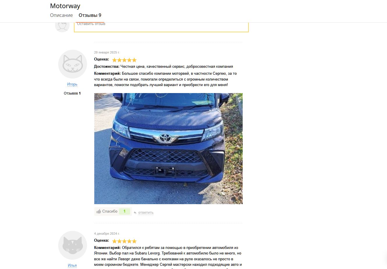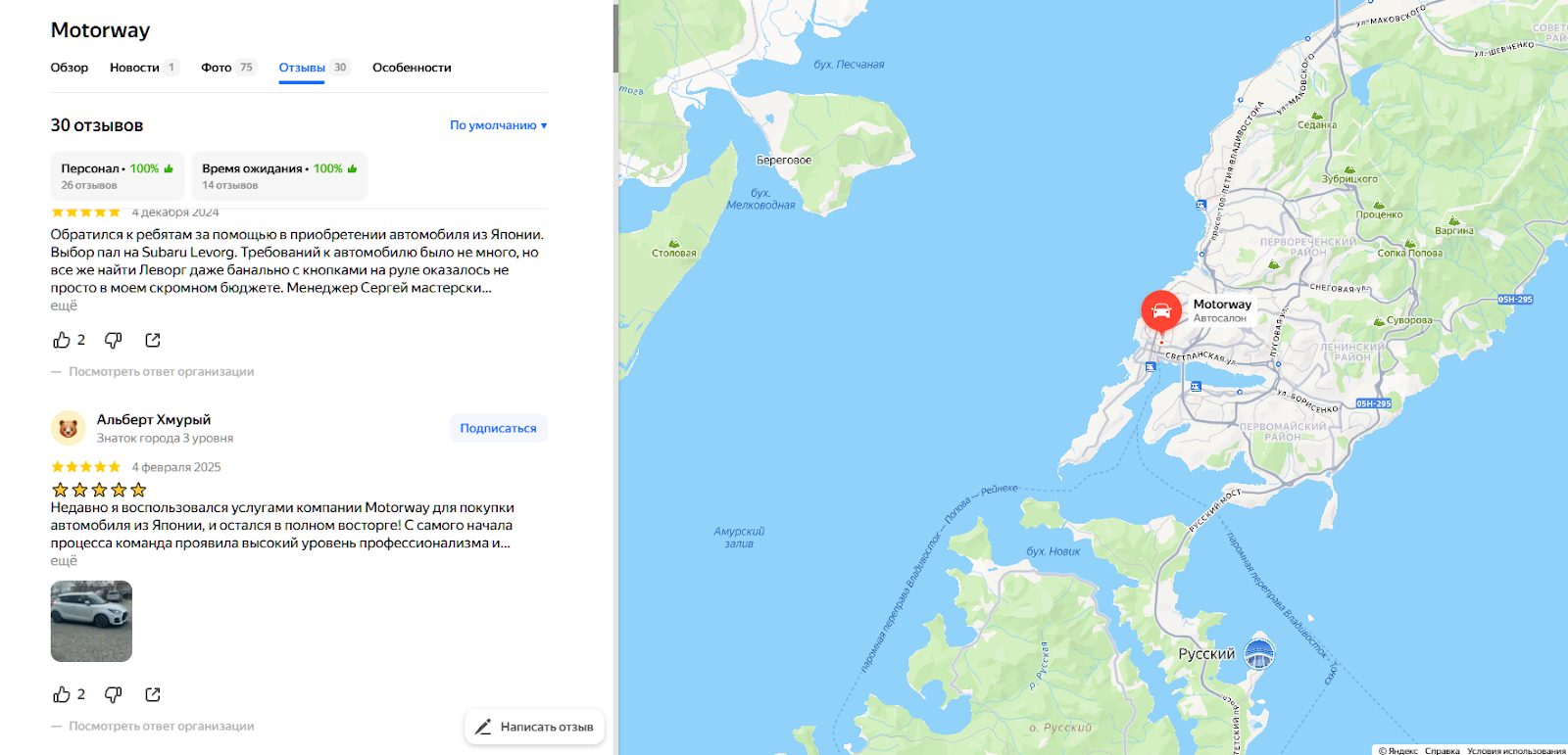 Про покупку авто через посредников «Мотор вей» отзывы есть на «Яндексе» и на региональных порталах Владивостока. Все комментарии покупателей исключительно положительные. Нет ни одного негативного отзыва.