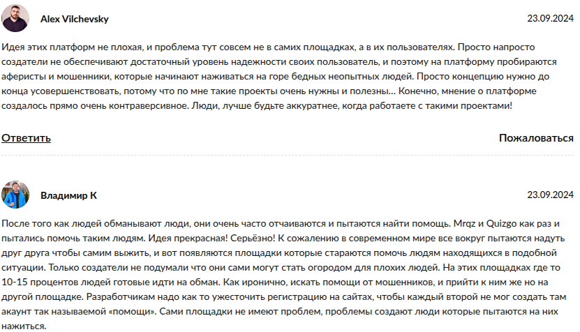 Реальные клиенты в сети о проекте Mrqz me оставляют разные отзывы — есть положительные и негативные фидбеки, что за сайтом скрывают скамеры. Однако чаще всего пользователи пишут про мошеннические квизы по типу раздач денег.