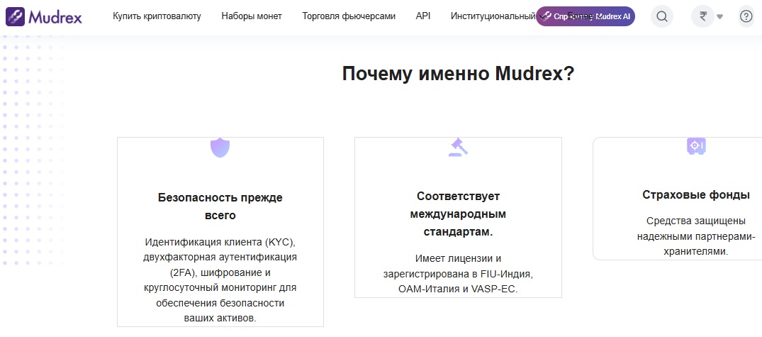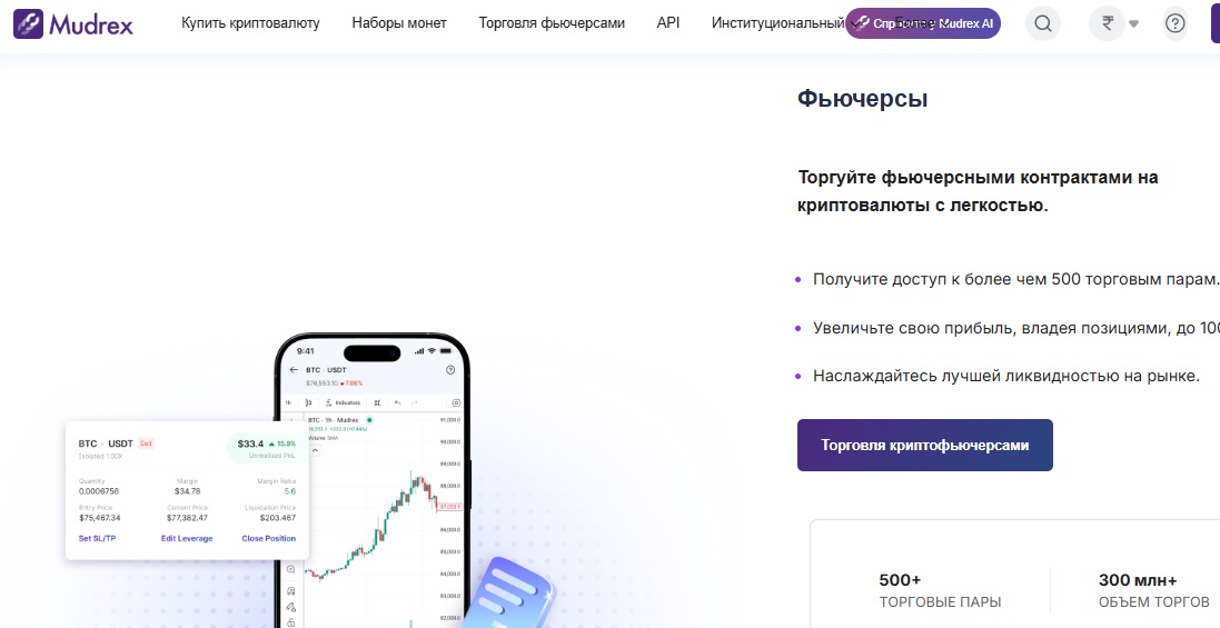 По информации с сайта, услугами Мудрекс пользуется более 2 млн клиентов, им доступен выбор из более чем 650 криптомонет и свыше 500 фьючерсных контрактов, а также инвестирование по схеме SIP и фьючерсы. Одним из главных преимуществ является возможность использования для торговли местной валюты — рупий. Работать на платформе можно как с ПК, так и с телефона, мобильные приложения доступны в официальных маркетах.