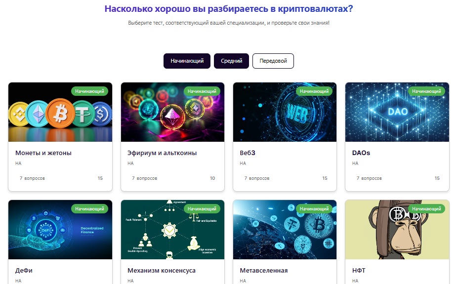 Чтобы помочь новичкам освоить азы трейдинга, владельцы предлагают обучение с мастер-классами. Также можно узнать свой уровень подготовки пройдя тесты по разным направлениям.