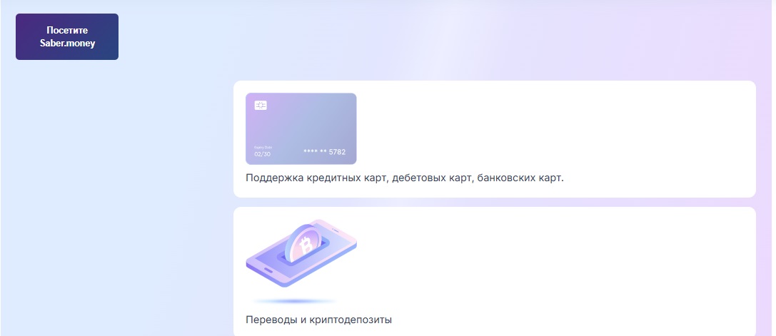 Saber.money — это отдельный продукт экосистемы, ее платежная и фиатная инфраструктура. Она включает в себя: