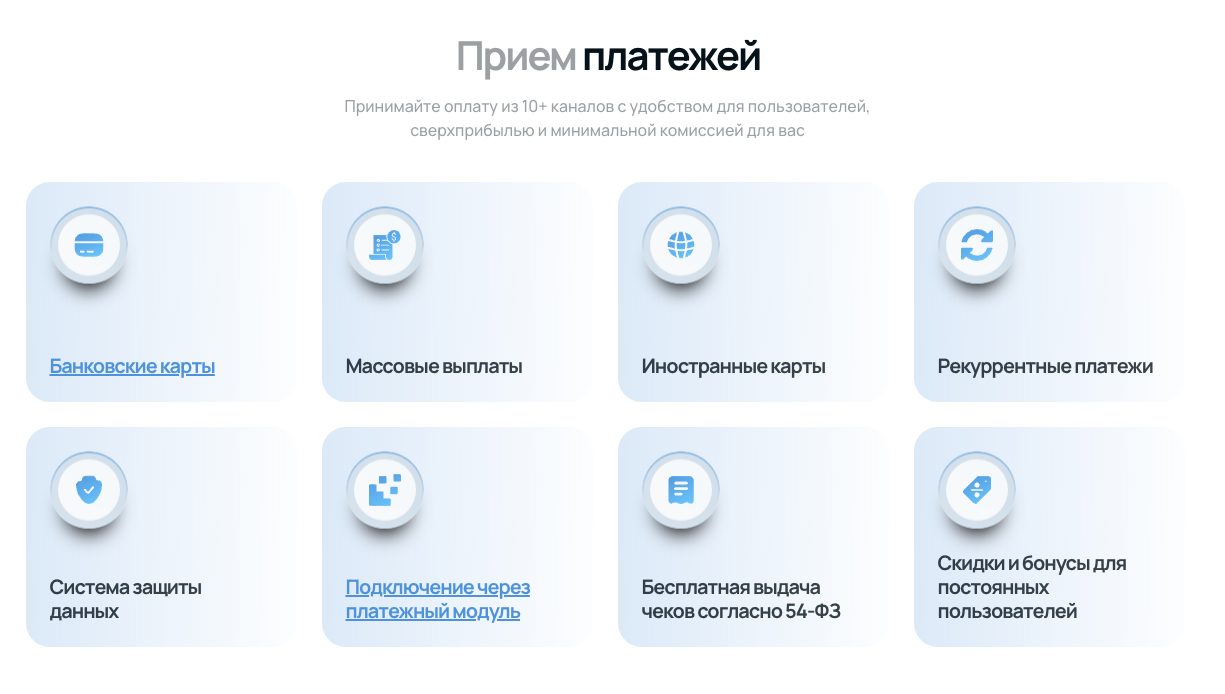 Сервис работает напрямую с российскими и иностранными банковскими картами, СБП, «Yandex Pay» и «МИР ПЭЙ», а также платежными решениями от «Сбера» и «Т-Банка».