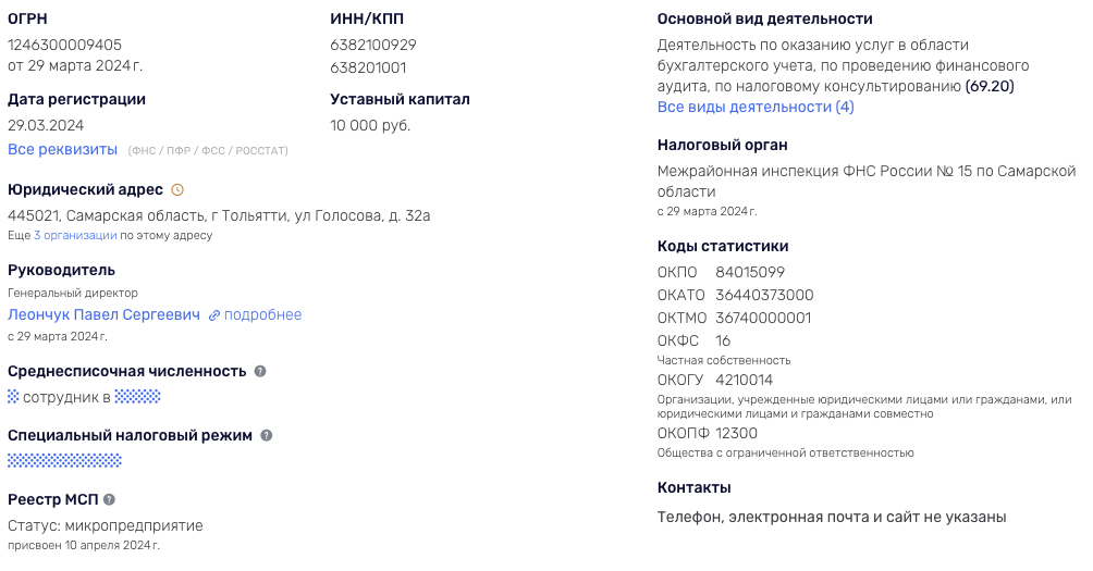 Есть пара настораживающих моментов. Первый — организация была внесена в реестры только в марте 2024-го года. Второй — ее уставный капитал минимален и составляет всего 10 тысяч рублей.