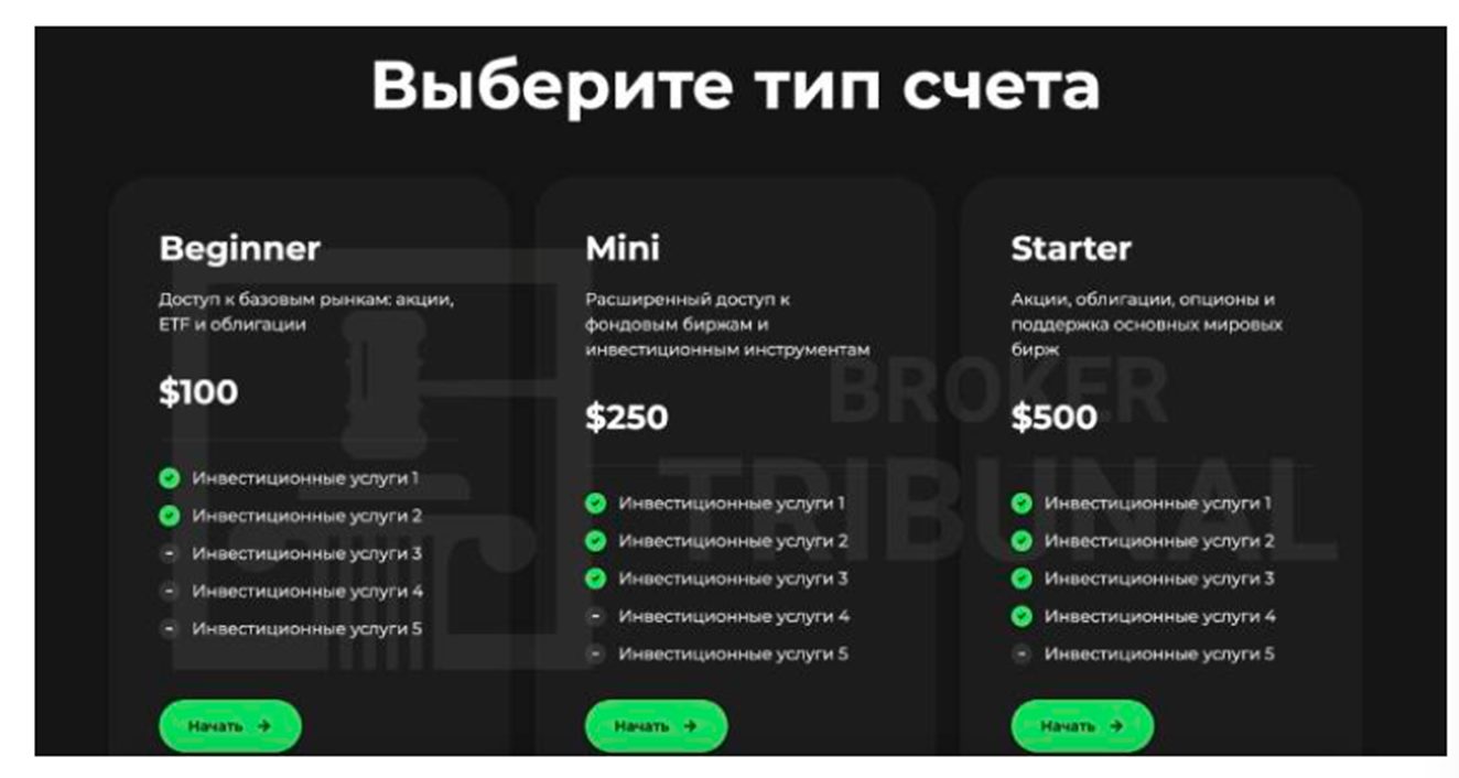 • Beginner – стартовое депо от ста долларов, предусмотрен доступ к базовому набору активов, в том числе к облигациям;