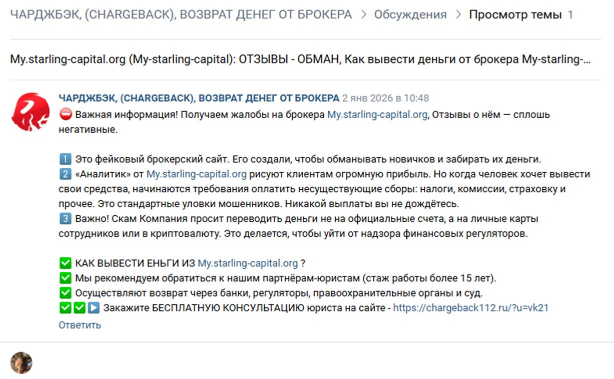 Вердикт, что Https my starling capital org мошенники был вынесен и экспертами по чарджбэку.
