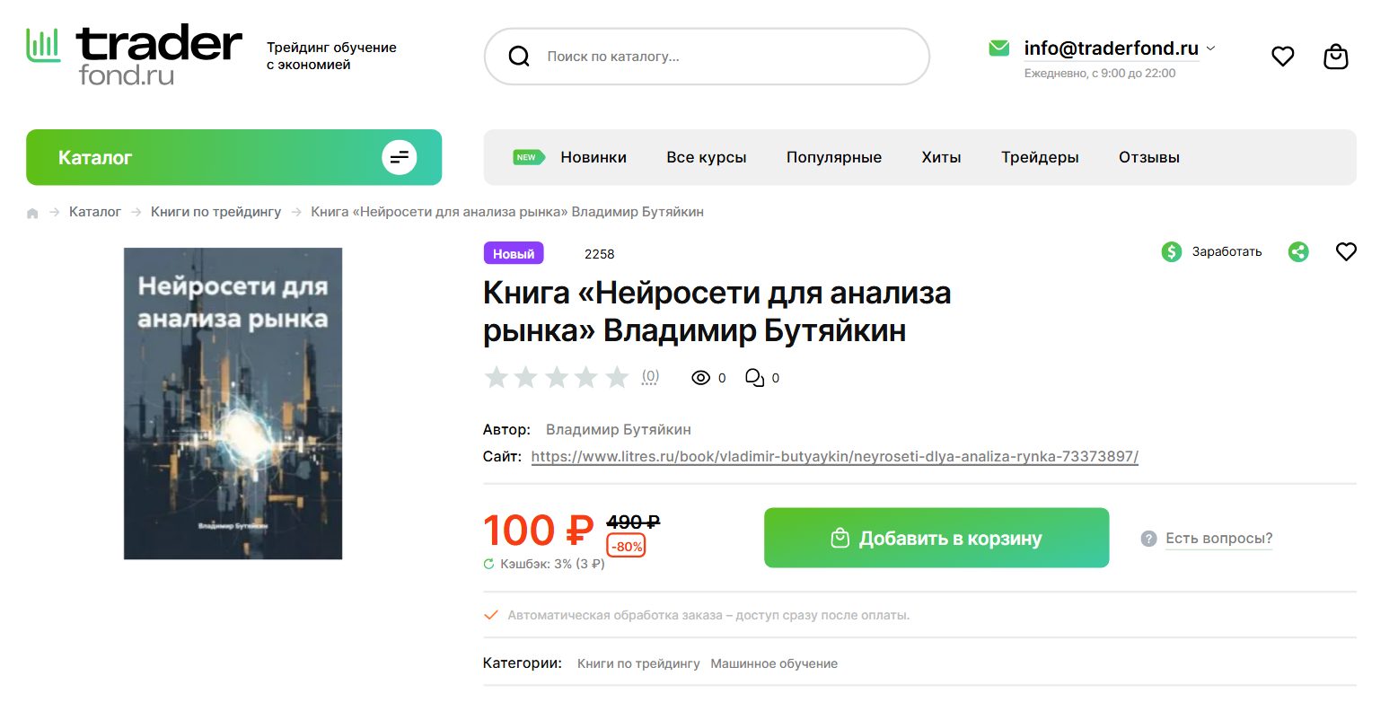 Книга «Нейросети для анализа рынка» вышла на рынок недавно. Автор рассматривает в ней актуальную на данный момент тему. Однако нет доказательств компетентности Владимира Бутяйкина. Отзывы трейдеров о данной работе отсутствуют.