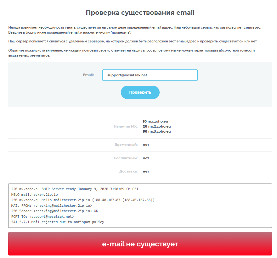 Для получения помощи брокер дает адрес support nesatsak net. Данной почты не существует. Помимо почты на сайте также можно найти адрес и телефон компании. По указанному адресу находится бизнес-центр, в котором заявленной компании нет. По указанному номеру дозвониться ни до кого невозможно. Таким образом, связаться с администрацией проекта и получить помощь просто невозможно.