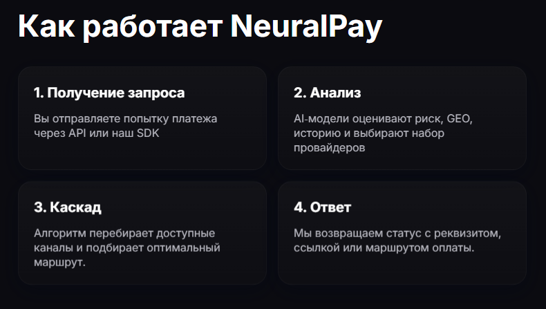 NeuralPay — надстройка над платежной системой. Пока создатели сами ищут варианты работы с гео Азербайджана и Узбекистана. Модель все еще в тестовом режиме.