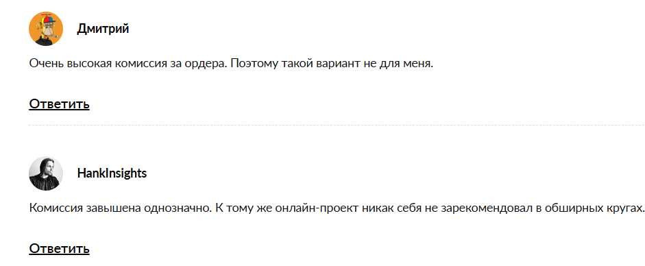 Многие люди сообщают о том, что на сайте слишком высокая комиссия, потому такой вариант им не подходит. Проект непопулярен и никак себя не зарекомендовал, что также вызывает недоверие.