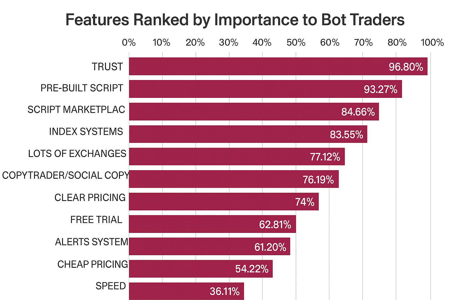 • Зарубежные фавориты: Haas Online Trade Server (~62% среди использующих), CryptoHopper (~34%), CryptoTrader (~21%).