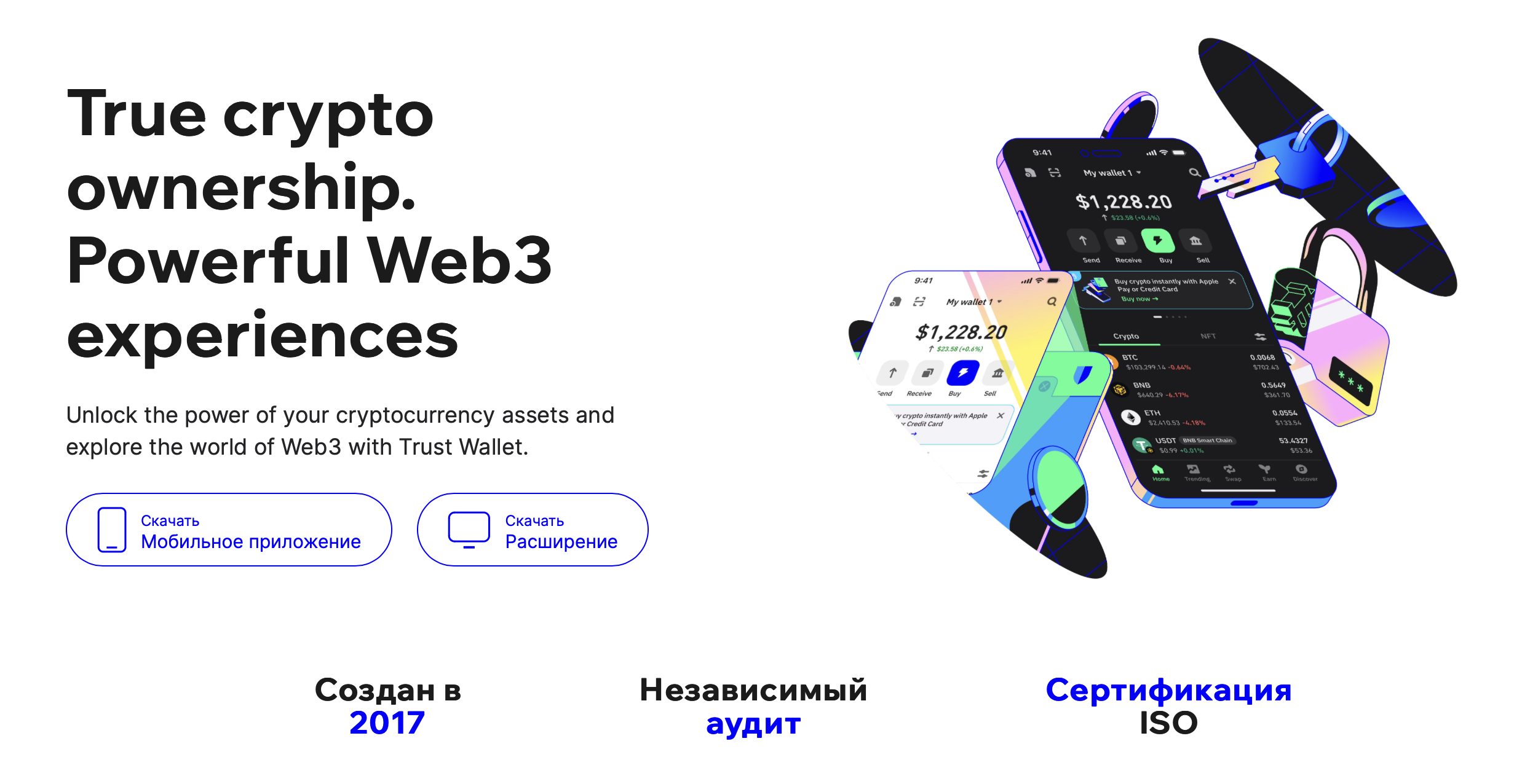 • Мобильный dApp-браузер и расширение, широкий охват сетей — Trust Wallet.