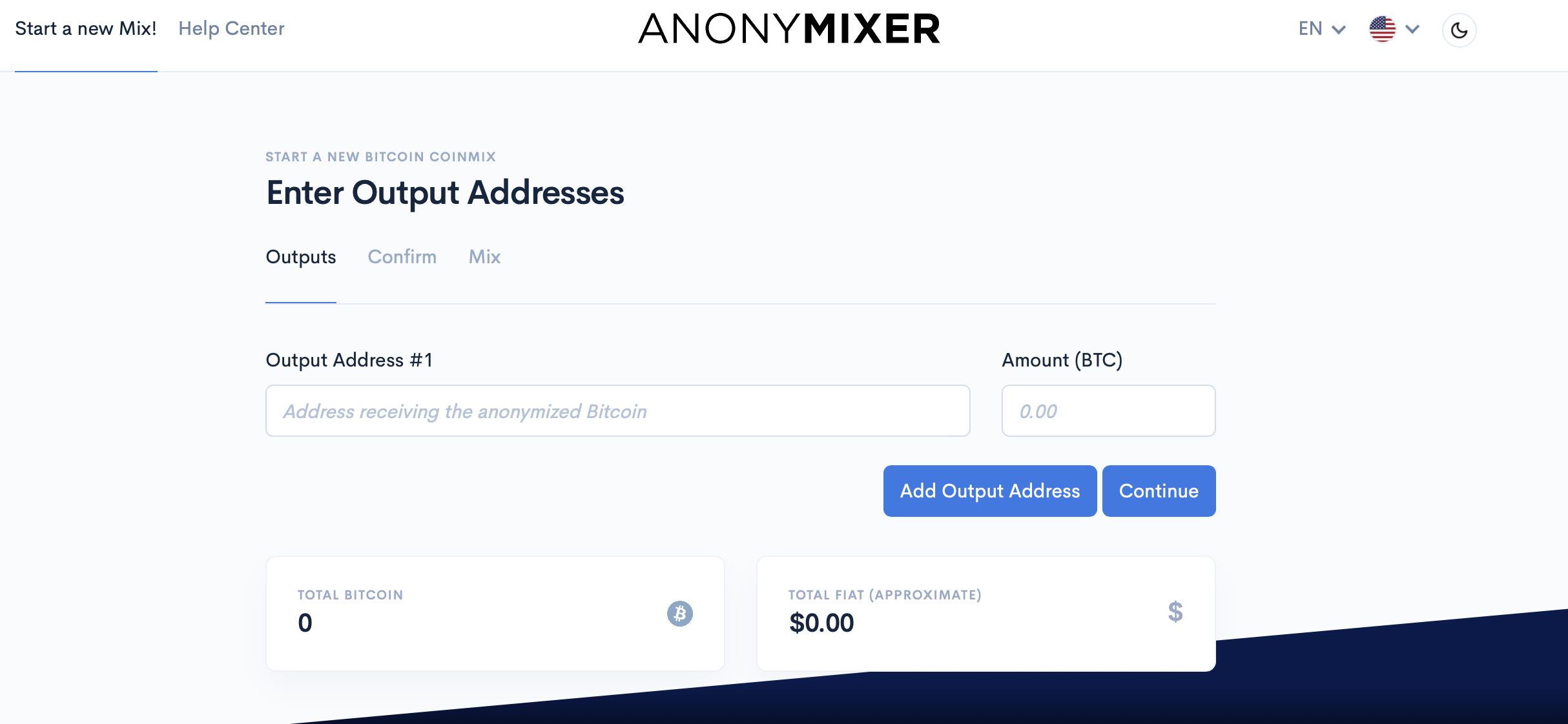 - Добавить один или несколько адресов для выдачи; разбиение повышает приватность.