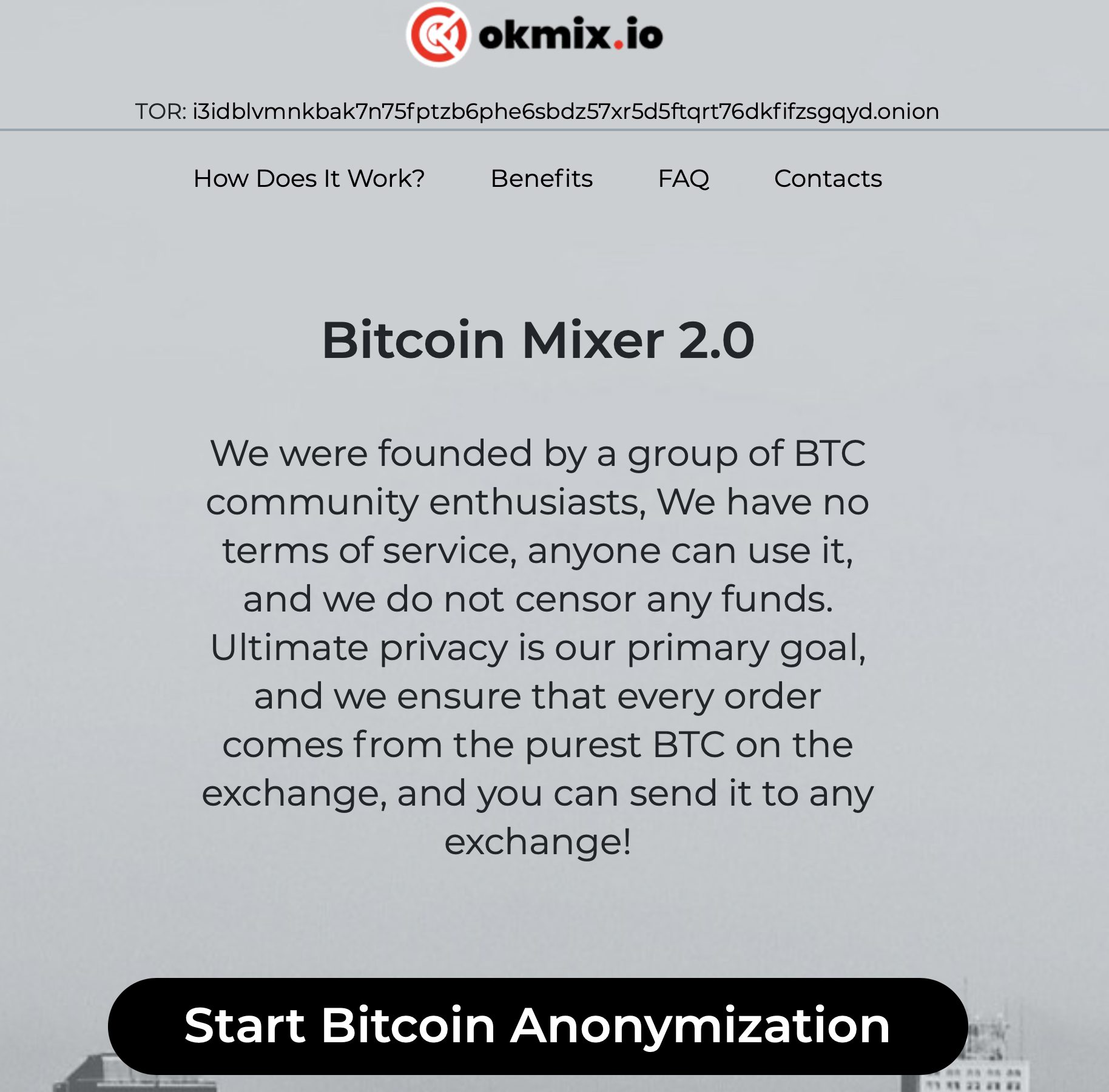 Технология CoinJoin, вариант усиления приватности с XMR‑мостом, поддержка BTC и ETH; доступ через Tor, за дополнительные адреса начисляется доплата, выдаются гарантийные письма.