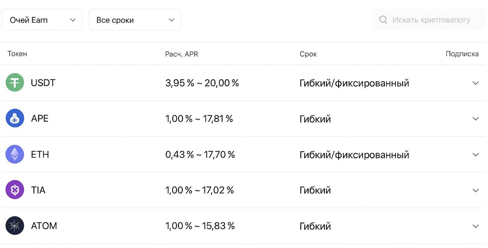 - Ончейн‑инструменты и простые депозиты — OKX; более 170 позиций, отдельный модуль для ETH, промо‑пулы с ограниченным сроком.