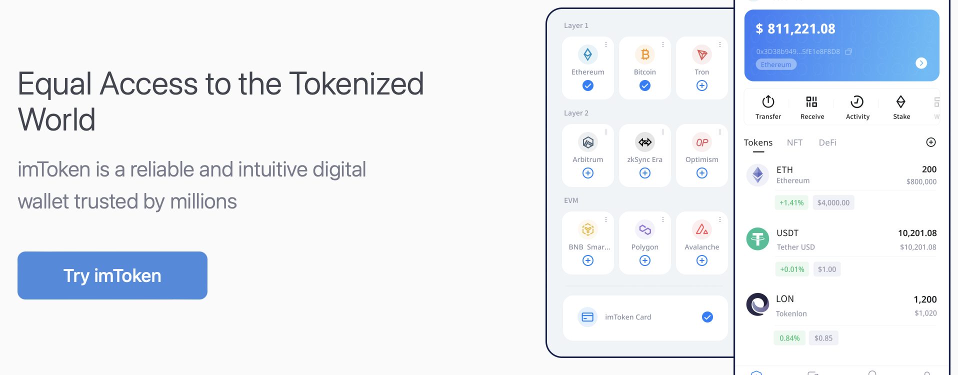 - Менеджер активов для мобильных устройств, дополняемый imKey Pro — imToken; около дюжины сетей и доходные инструменты.