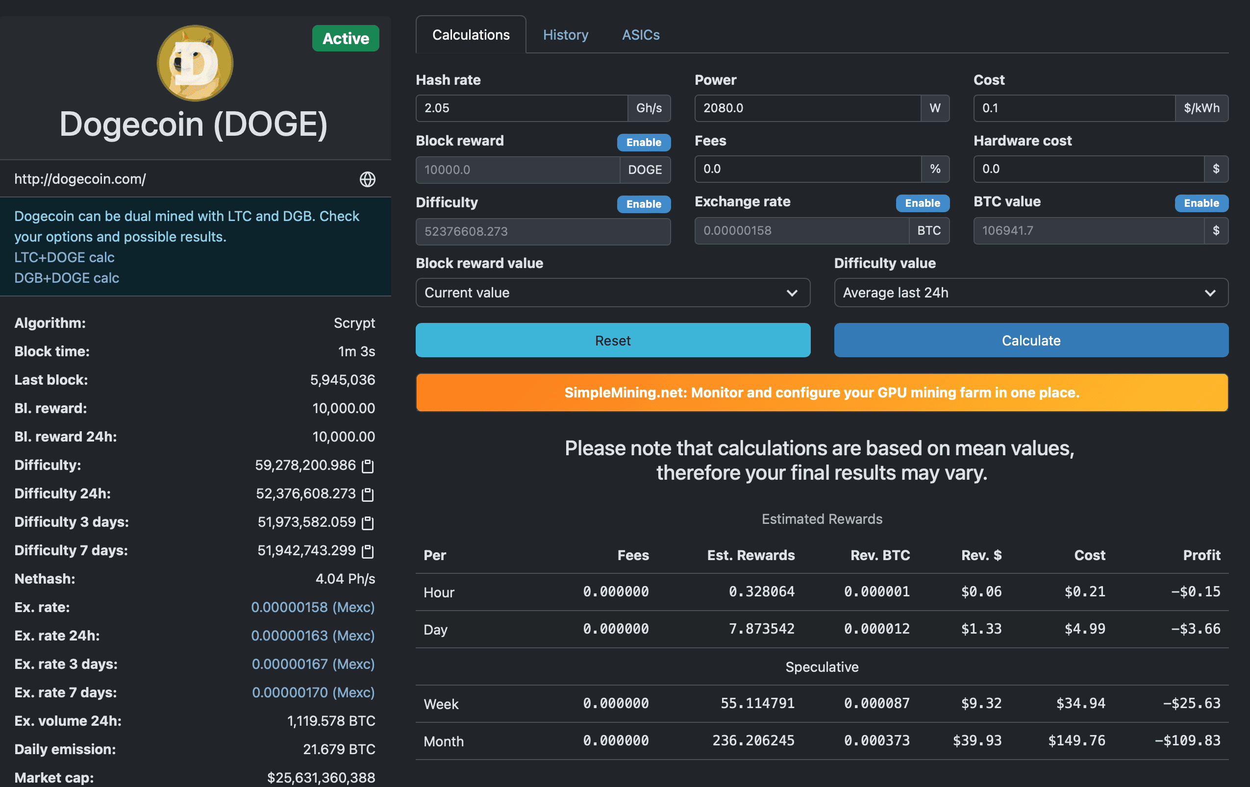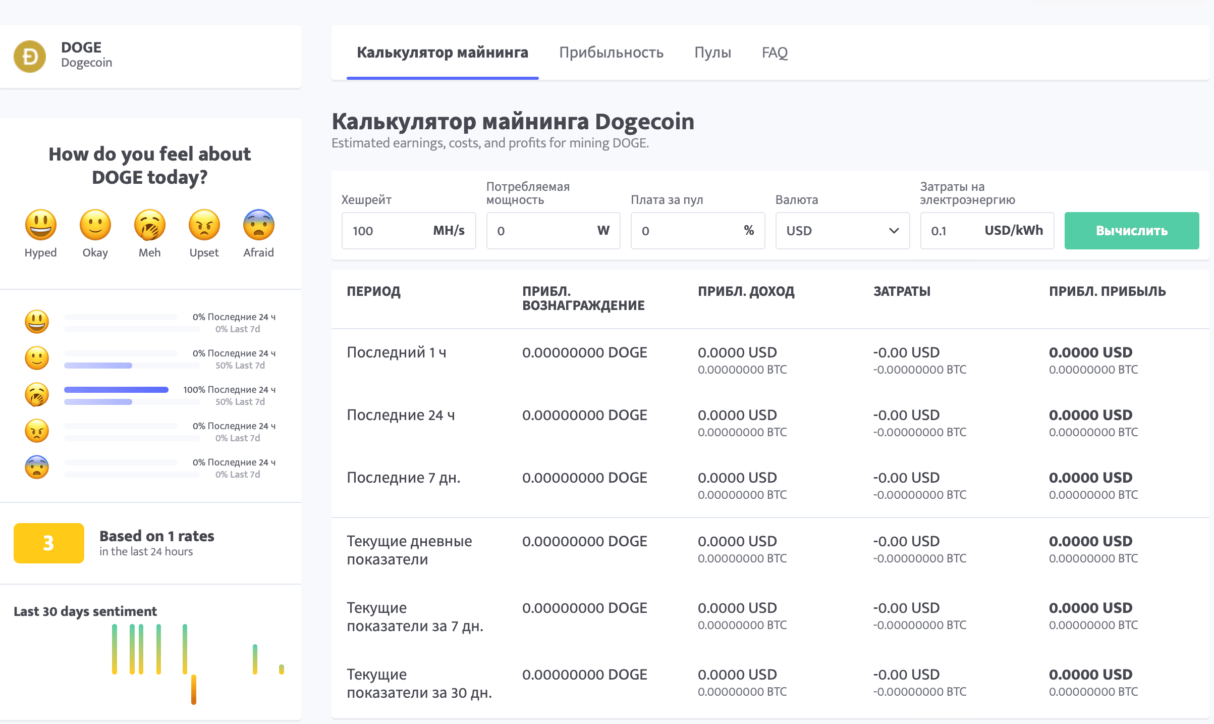 Ниже перечислены площадки, где можно прикинуть прибыльность для DOGE с учётом потребления и оплаты пула.