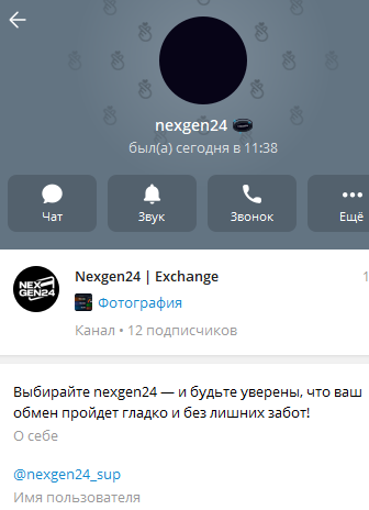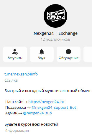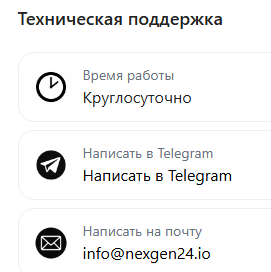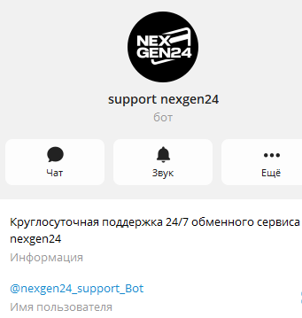 А также на официальной онлайн-платформе закреплена ссылка на тг-профиль компании Nexgen24 support Bot.
