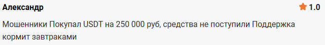 У граждан требуют деньги за прохождение платной verification, которая почему-то не ограничивается одной проверкой. Людям приходится переводить обманщикам все новые и новые суммы в надежде, что денежные средства все же «разморозятся», и обмен наконец-то пройдет успешно. К сожалению, мошенники не имеют в арсенале моральных ценностей такие понятия, как совесть и благочестие. Поэтому просто продолжают дальше разводить доверчивых юзеров. В итоге люди теряют на этой скам-площадке все средства, отправленные для обмена.