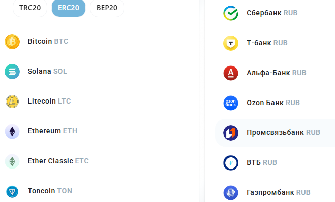 В списке crypto числятся «Солана», «Эфир», «Лайткоин» и другие популярные монеты. Exchange ресурс работает со многими известными российскими банками, поэтому, вероятно, площадка нацелена преимущественно на владельцев счетов, открытых в финансовых компаниях РФ.